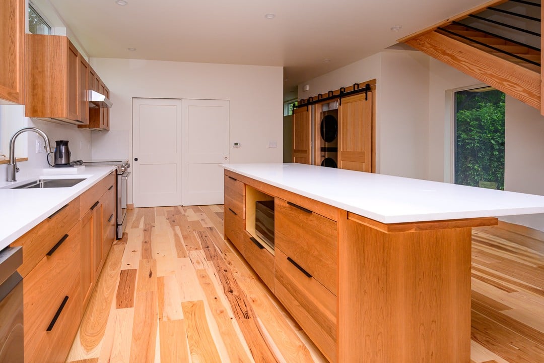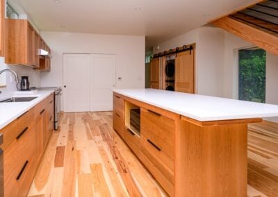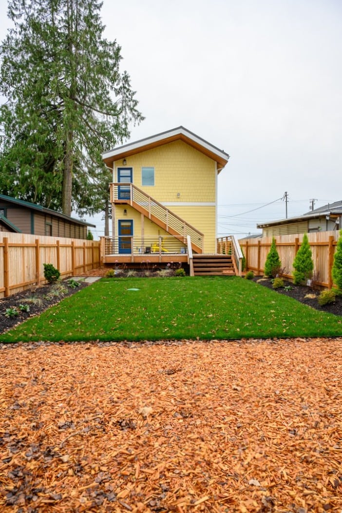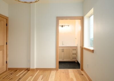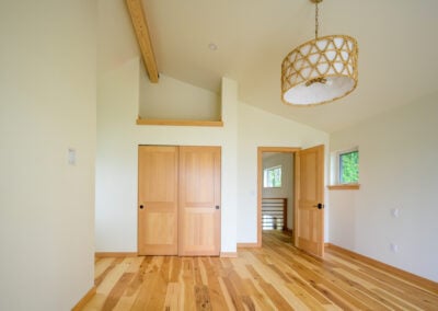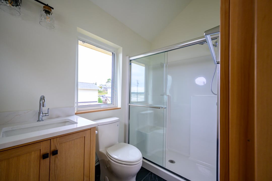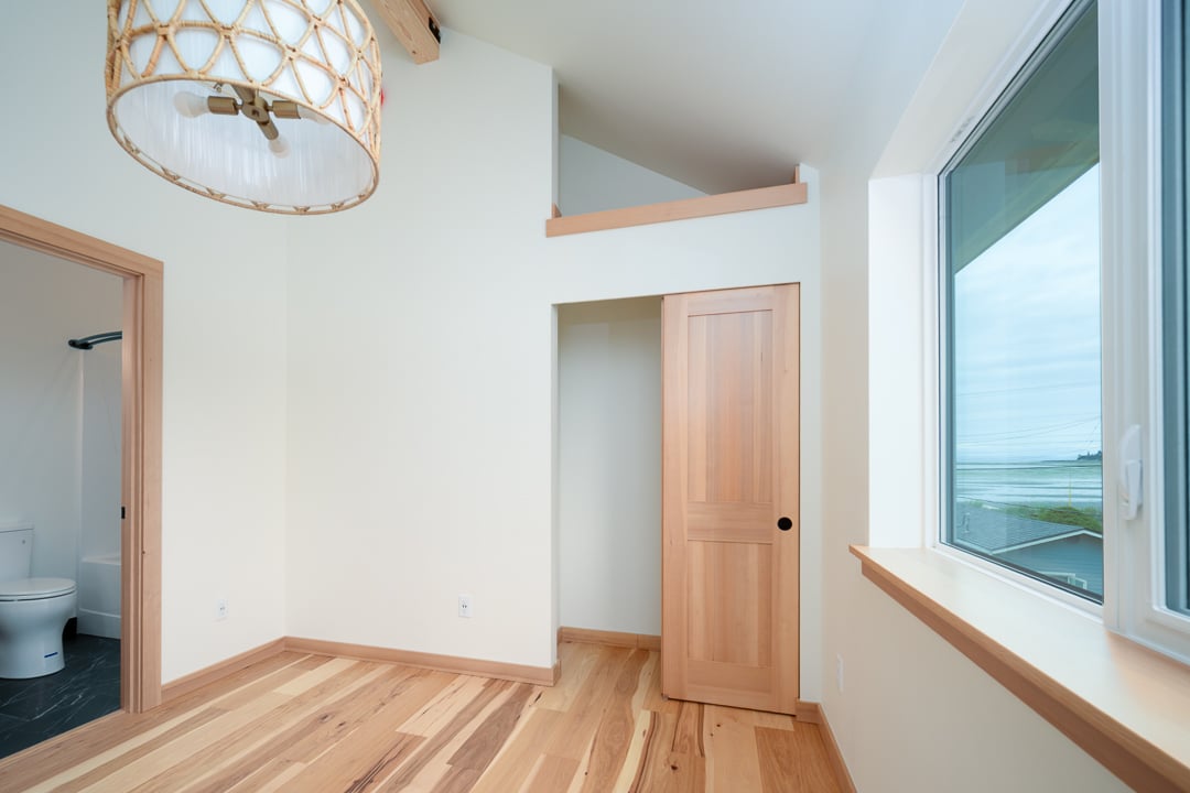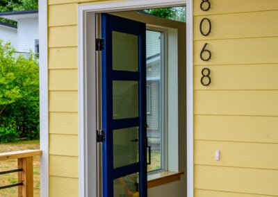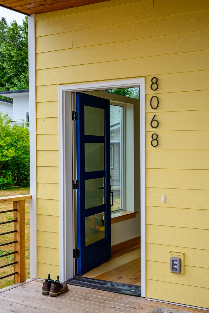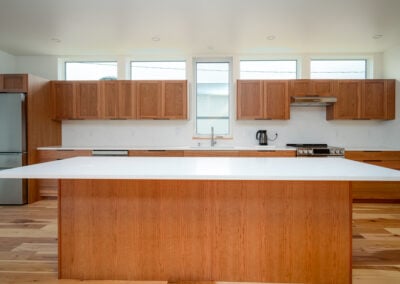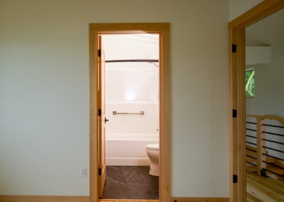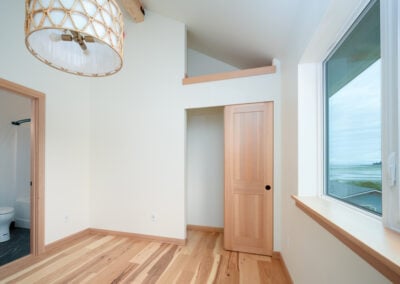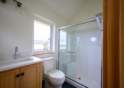 Lovingly nicknamed the trailer house, the lot size required that the house be long and skinny to fit on the infill lot, mimicking the client’s previous vacation trailer home a few lots over where they spent many years visiting while growing up. Birch Bay View was also designed to house the client’s children, grandchildren and friends for years to come. Although the first floor isn’t currently built to accommodate aging-in-place due to the front steps, the first floor is otherwise designed to be accessible when the clients are older. The home was designed to be able to easily install a ramp over the stairs in the future to make it fully accessible.