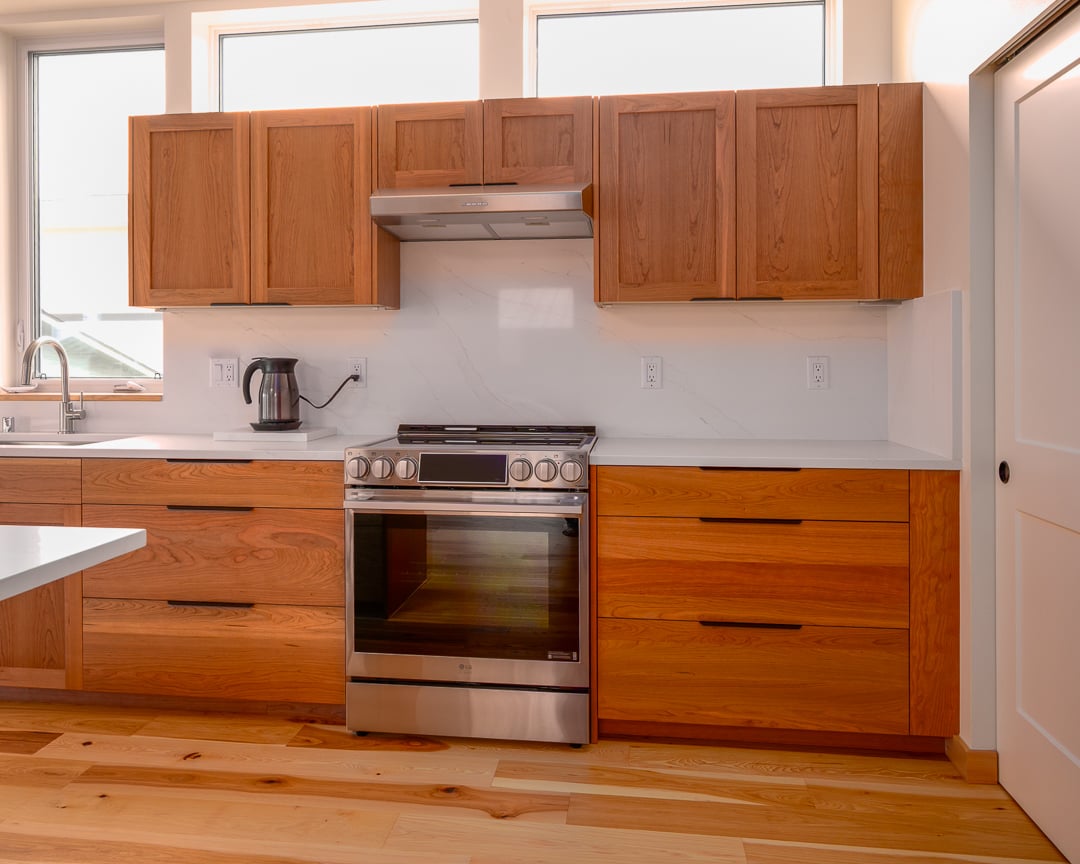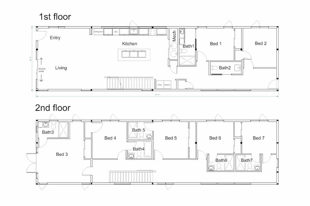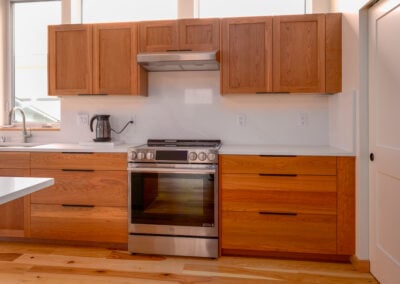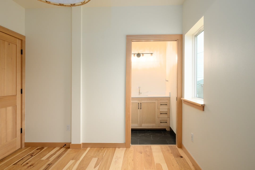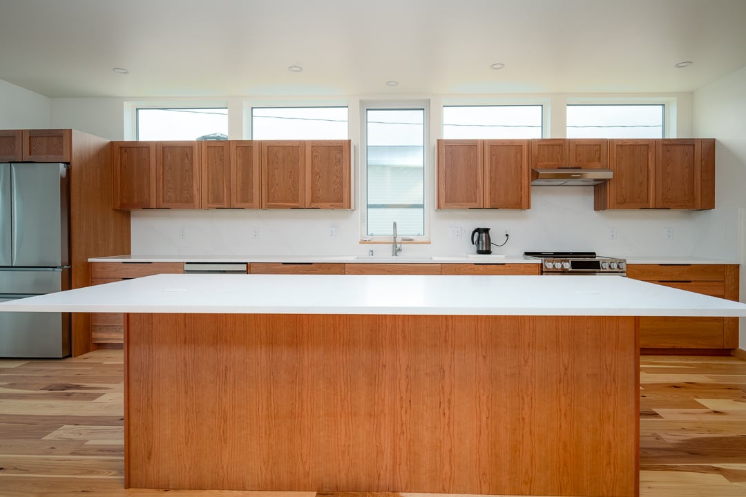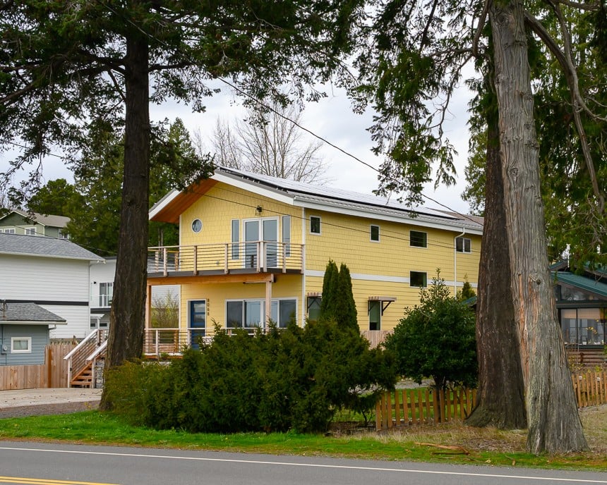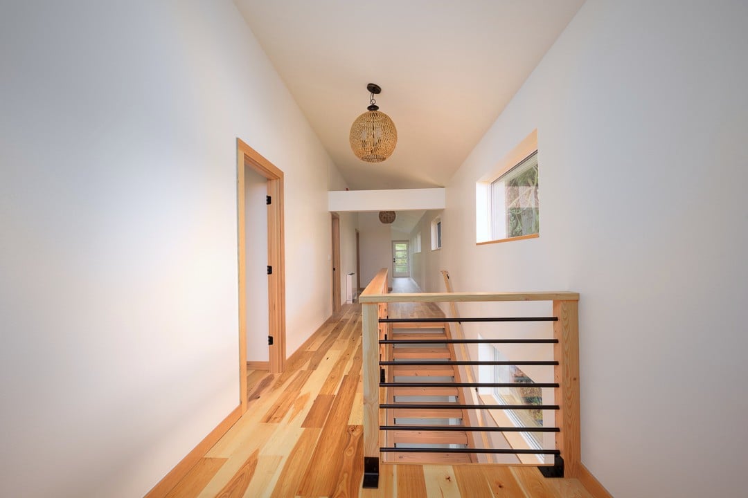 Lovingly nicknamed the trailer house, the lot size required that the house be long and skinny to fit on the infill lot, mimicking the client’s previous vacation trailer home a few lots over where they spent many years visiting while growing up. Birch Bay View was also designed to house the client’s children, grandchildren and friends for years to come. Although the first floor isn’t currently built to accommodate aging-in-place due to the front steps, the first floor is otherwise designed to be accessible when the clients are older. The home was designed to be able to easily install a ramp over the stairs in the future to make it fully accessible.