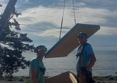 As the name suggests, Birch Bay View sits right across the street from Birch Bay with epic views of the water and easy access to the beach.  Since the lot is within a tsunami zone, appropriate future-proofing was necessary. In this case, the zoning required that the house be raised 4’ off the ground. Fortunately, this just added more visibility of the scenery. The permitting process, which is always done in-house, took a full year in order to obtain the major variance.